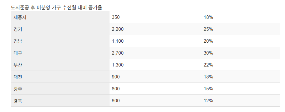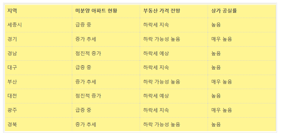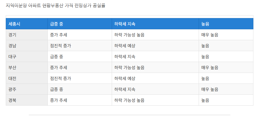 | 부동산 시장 | 준공 후 미분양 증가, 수도권 중심 미분양 급증, 가격 하락세 지속, 아파트 폭락 가능성 경고 |